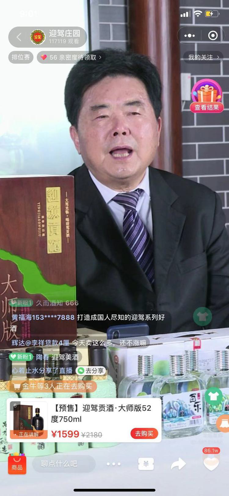 迎驾贡酒·大师版全球首发,直播不到半小时销售一空,销售额突破千万。